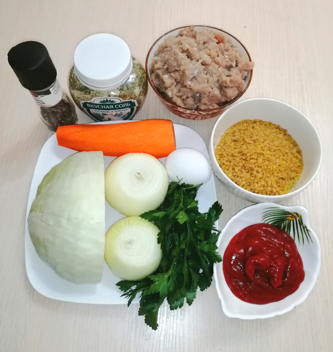 Друзья, всем привет! Недавно на моём канале вышла публикация о булгуре, где очень много говорится о пользе этой крупы, поэтому сегодня я хочу использовать в своём рецепте булгур. А готовить я буду ленивые голубцы с булгуром. Для приготовления нам понадобится: любой фарш 500 гр, булгур 100 гр, капуста 400 гр, 1 морковь, 2 луковицы, 1 яйцо, 3 ст. ложки томатной пасты, соль, перец, ваши любимые приправы и немного растительного масла. Булгур промываем и ставим варить до полуготовности, а пока займёмся овощами. Капусту надо нашинковать, как можно мельче и обдать кипятком, чтобы она стала мягкой. Лук режем кубиком, а морковь натираем на крупной тёрке. Ставим овощи пассеровать на небольшом количестве растительного масла под крышкой. В глубокой миске смешиваем фарш, капусту, булгур, добавляем яйцо, соль и перец. Формируем голубцы (форма может быть любой, как вам нравится) и обжариваем их на сковороде со всех сторон. Осталось довести наше блюдо до готовности. В кастрюлю выкладываем ч