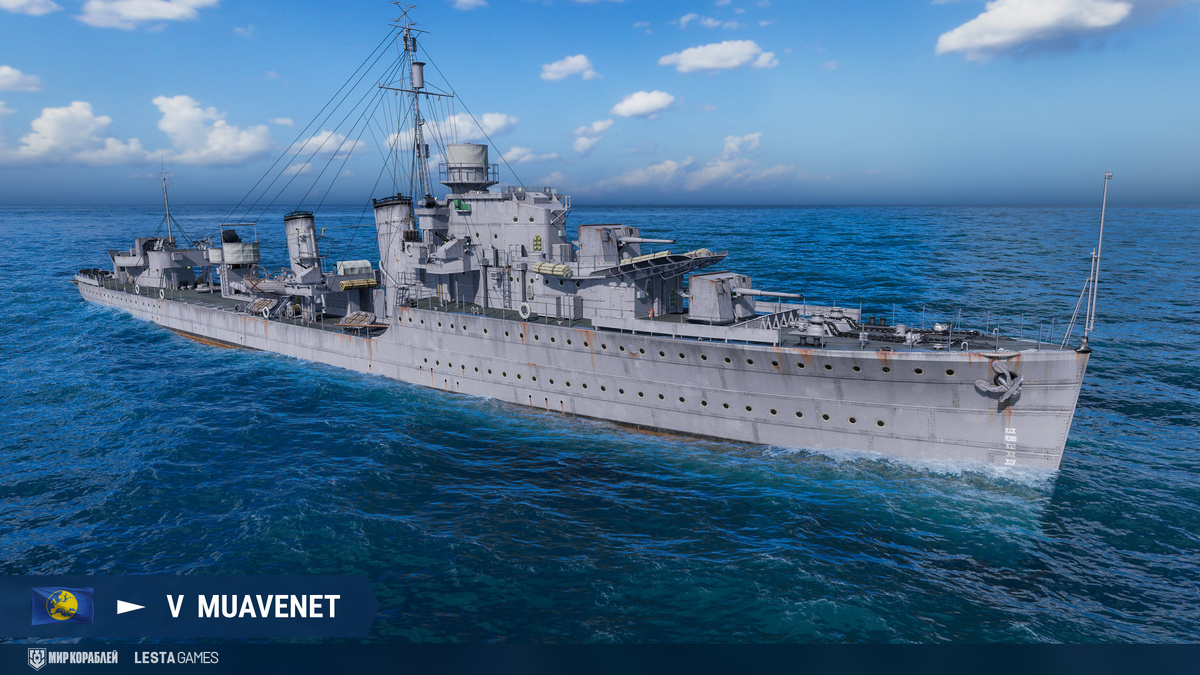 Эскадренный миноносец "Муавет"(5 уровень) - британского эскадренного миноносца типа "I", то есть один из множества "алфавитных эсминцев. В 1938 году Турция заказала в Великобритании для своего флота четыре таких эсминца, но как можно догадаться не получила их в полном составе. Турции передали только два из четырех кораблей (постройки Денни, Дамбртон), а вот два других, которые строились на верфях "Виккерс-Армстронг" (Барроу) были выкуплены у Турции и включены в состав британского флота. "Муавет" получил британское название "Инконстант" и довольно успешно действовал в составе Флота Метрополии и Восточного флота. Успел побывать и у Мадагаскара, и в Средиземном море, у Мальты, и в Атлантике и у берегов Норвегии. В 1945 году был передан Турции.