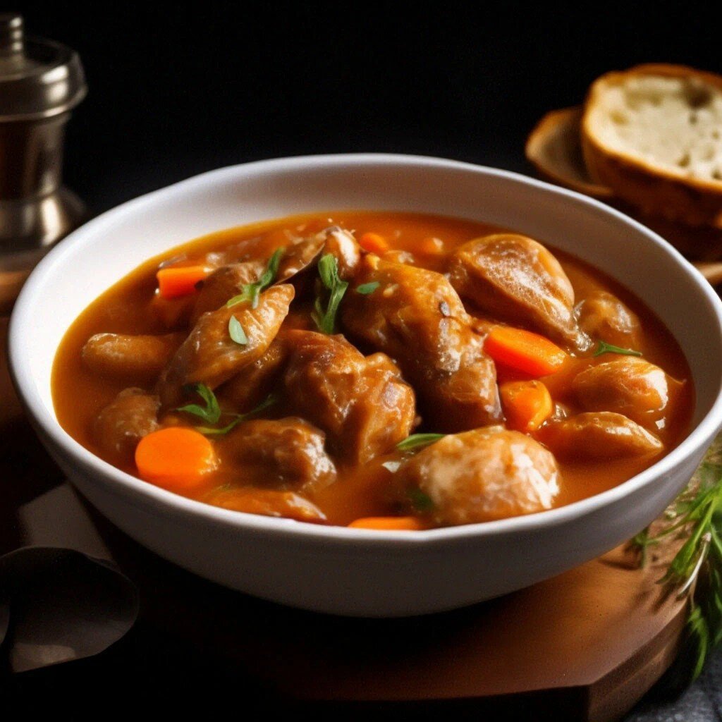 Ингредиенты: - 1 кролик весом около 2 кг - 2 луковицы - 3 моркови - 4 картофелины - 500 мл куриного бульона - Соль и перец по вкусу - Растительное масло для жарки Приготовление: 1. Разделайте кролика на порционные куски и обжарьте на растительном масле до золотистой корочки. 2. Добавьте нарезанный лук и морковь, и жарьте еще 5-7 минут. 3. Добавьте нарезанный картофель и жарьте все вместе еще 5 минут. 4. Влейте куриный бульон и доведите до кипения. 5. Уменьшите огонь и тушите рагу около 30 минут, пока мясо не станет мягким. 6. Посолите и поперчите по вкусу. 7. Подавайте рагу горячим с гарниром из овощей или риса. Приятного аппетита!