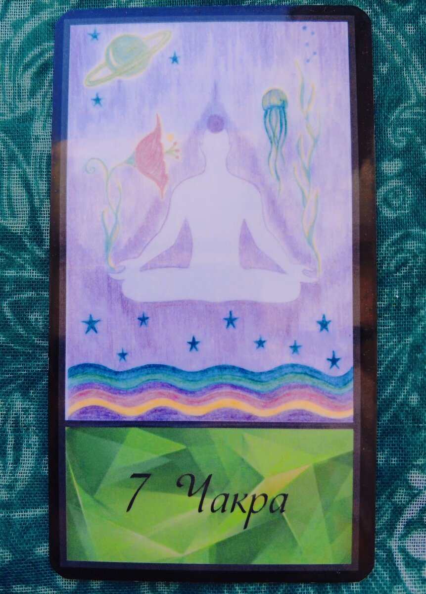 Здравствуйте, дорогие читатели. Сегодня мы узнаем, какие энергии будут сопровождать нас в течение этого вторника - 2 апреля. И для этого рассмотрим значение следующей метафорической карты. Давайте разберём значение метафорической карты - оракула, которая называется "7 чакра". На карте изображён светлый силуэт человека на сиреневом фоне, сидящего в позе лотоса. На макушке человека символически точкой отмечена седьмая - фиолетовая чакра. Вокруг человека нарисованы различные символы земной и космической жизни. О чём для нас эта карта? Какие советы она даёт? Метафорическая карта "7 чакра" оракула представляет собой символическое изображение человека в позе лотоса с фиолетовой чакрой на макушке. Эта карта обычно ассоциируется с духовным развитием, гармонией и балансом. Седьмая чакра, изображенная на карте, представляет высшие уровни сознания, духовность и связь с космосом. Символы земной и космической жизни вокруг человека на карте могут указывать на важность баланса между материальным и д