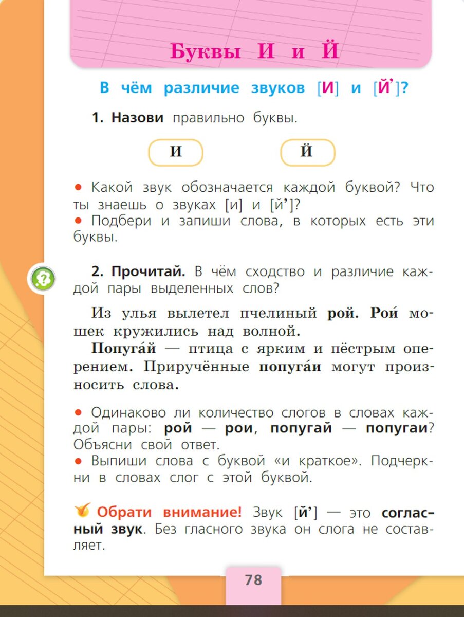 Для понимания детьми природы изучаемого звука Й необходимо провести ряд упражнений. В результате смыслового, звукового и слогового анализа данных пар слов делается вывод: