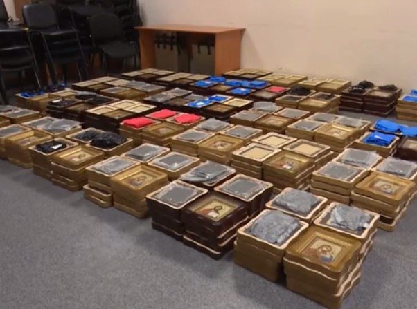 Этого хватило бы на подрыв жилого пятиэтажного дома. В Псковской области на пункте пропуска на границе с Латвией российские пограничники совместно с ФСБ изъяли иконы, в которых перевозили взрывчатку. Груз шел по маршруту Украина-Румыния-Венгрия-Словакия-Польша-Литва-Латвия-Россия. Внутри находились иконы, а в них 70 кг взрывчатки, части выстрела к РПГ-7 и 91 электродетонатор. Всего там было 27 самодельных бомб. Известно, что сделали иконы в Киеве, затем они поехали в Черновцы, затем в Румынию, откуда их и забрал водитель. Взрывчатка спокойно ехала две тысячи километров, ее спокойно пропускали на пунктах пропуска в шести странах Евросоюза, а в Румынии его тщательно досматривали. В ФСБ отметили, что мощности взрывчатки хватило бы на подрыв жилого пятиэтажного дома. В иконах перевозили гексоген, который намного мощнее тротила. В церковной утвари также нашли диверсионные взрыватели с замедлителями, из которых можно за считанные минуты собрать взрывное устройство. В настоящее время возбужде