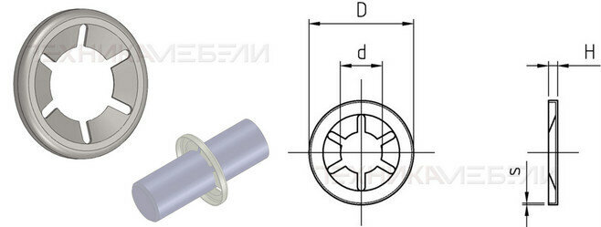 Шайба-фиксатор корончатая Starlock для вала Ø 5.0 мм (пружинная сталь), без колпачка, шт - Техника Мебели - Мебельная фурнитура и комплектующие
