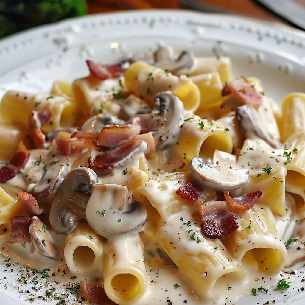 Макароны с грибами, беконом и сливками - это изысканное и ароматное блюдо, которое порадует вас своим насыщенным вкусом и нежной кремовой текстурой. Оно готовится из макарон, обжаренных грибов, хрустящего бекона и сливочного соуса. Это блюдо прекрасно подойдет для семейного обеда или ужина. Его можно подавать как самостоятельное блюдо или в качестве гарнира к мясу или рыбе. Попробуйте наши макароны с грибами, беконом и сливками и насладитесь их неповторимым вкусом и ароматом! Ингредиенты: Приготовление: Подавайте макароны с грибами, беконом и сливками горячими, украсив свежей зеленью. Приятного аппетита!