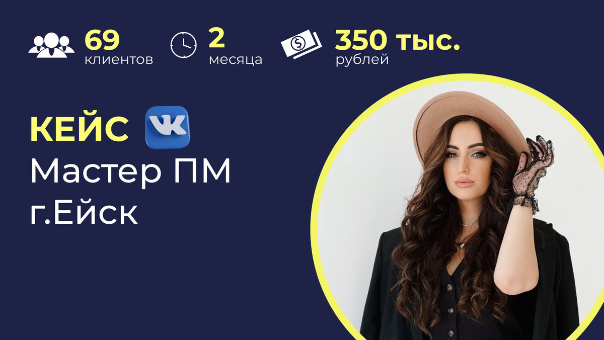 Hi Client! Хотим поделиться захватывающими результатами работы нашего таргетолога Игоря с Татьяной - мастером перманентного макияжа из Ейска! Подготовьтесь к вдохновению и реальным цифрам успеха! Полная запись на месяц вперед через ВК - это реально? НЕ БУДЕМ ТЯНУТЬ, ОТЧЕТЫ В СТУДИЮ: За 2 месяца вместе с Татьяной мы: 1. Сделали записей более чем на 350.000 рублей; 2. А это на секундочку 69 новых клиентов; 3. И плюс ко всему 287 новых подписчиков = потенциальных клиентов; Не плохо, да?) Все выглядит гладко, но есть одно НО - население Ейска 82 тыс. человек!Это сколько там нашей ЦА? Именно такой вопрос мы задали себе, когда начали работу🤔 Но потом мы подумали: «А что если эту проблему превратить в возможность?» МАЛО НАРОДУ = МАЛО МАСТЕРОВ - говорим мы себе и начинаем думать, как нам быстренько стать топ - 1 мастером в городе? 🎯 Наша главная цель была привлечь внимание потенциальных клиентов, которые активно пользуются ВКонтакте. Мы разработали точную стратегию, опирающуюся на глубокий а