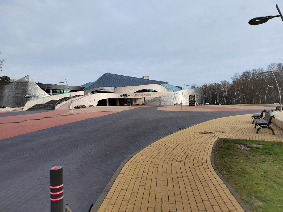 Немного погуляли вокруг Янтарь-холла, ничего пока не работало, лифт открылся в 10.00, как и кафе при нем. Видео тут.
