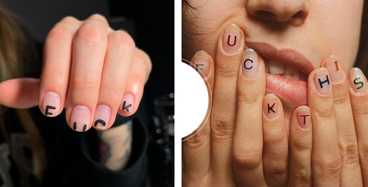 Маникюр может спасти самый неприглядный образ и испортить трендовый аутфит. Все зависит от того, насколько аккуратно поработал мастер и какой дизайн выбрала клиентка. Ниже собрали примеры трендовых когда-то решений, которые сегодня устарели и даже выдают плохой вкус. 1. Дизайн с матерными словами Кому-то он может показаться забавным, но большинство людей вряд ли оценят смелость автора маникюра. Особенно коллеги или клиенты, которым придется вблизи наблюдать необычные ногти. Вряд ли такой маникюр будет уместным и в случае, если ты окажешься в компании малознакомых людей, на которых хочешь произвести хорошее впечатление. Если дизайн ногтей с матерными словами очень приглянулся тебе, прибереги его на время отпуска. Или попроси мастера использовать для написания букв обычный лак, который ты сможешь удалить сама, если поймешь, что затея была не самой удачной. 2. Ногти-лопатки Пару лет назад треш-маникюр был в тренде. Девушки по всему миру экспериментировали с дизайном и формой ногтей. Одним