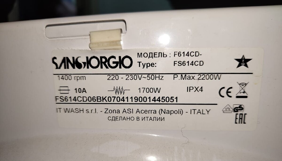 Плата управления стиральной машины SANGIORGIO F614CD (FS614CD) после скачка напряжения. Решено.