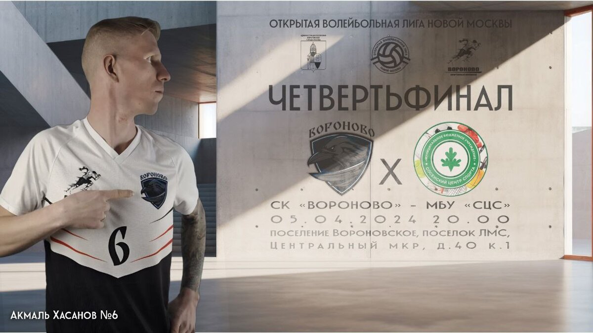 05.04.2024 года (Пятница) в 20:00 в МБУ "СК "Вороново" по адресу: г. Москва, п. Вороновское, п. ЛМС, мкр. Центральный, дом40с1 состоится матч 1/4 финала по волейболу МБУ "СК "Вороново" - МБУ "СЦС". Ждём Всех любителей волейбола поддержать нашу команду. #волейбол #мбусквороново #сквороново