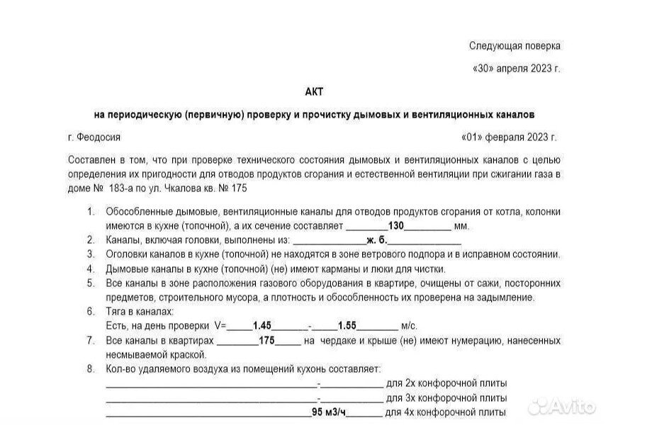 Среди прочего в списке значился акт печника о соответствии дымохода для вытяжки отработанных газов. Вот такого образца.