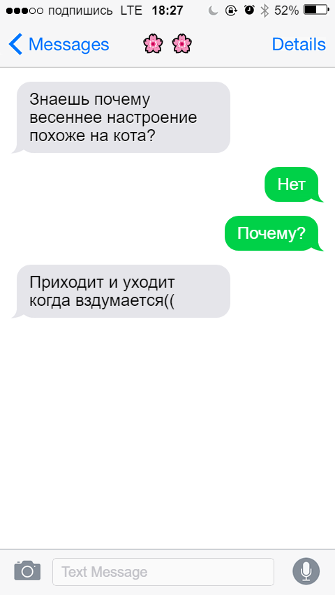 На дворе уже апрель, весеннее настроение все чаще посещает нас, особенно с приходом тепла и растаявшего снега. В марте это не так ярко ощущалась, все же в большинстве городов еще сохранялся зимний холод, да и снег лежал. Но сейчас... Я решила создать 5 переписок про весну, чтобы окончательно проникнуться этим настроением, послушать капель, порадоваться набухшим почкам на деревьях, насладиться горячим чаем/кофейком и сменой тяжелого и громоздкого пуховика на пальто и легкие курточки. К сожалению, если на календаре весна, то не всегда она ощущается и на улице. Ладно еще дожди, понятное дело, но вот снегопад в апреле никак не ожидаешь. увы, пару лет назад в моем регионе снег и лежал, и с неба падал, и, кажется, вообще не собирался уходить(( Пришла весна - жди простуду. Увы, это уже как закон. Работает почти безотказно, особенно для людей со слабым иммунитетом и тем, кто в желании приблизить лето не всегда одеваются по погоде (я обычно в числе вторых). Я тоже люблю весну за природное обнов