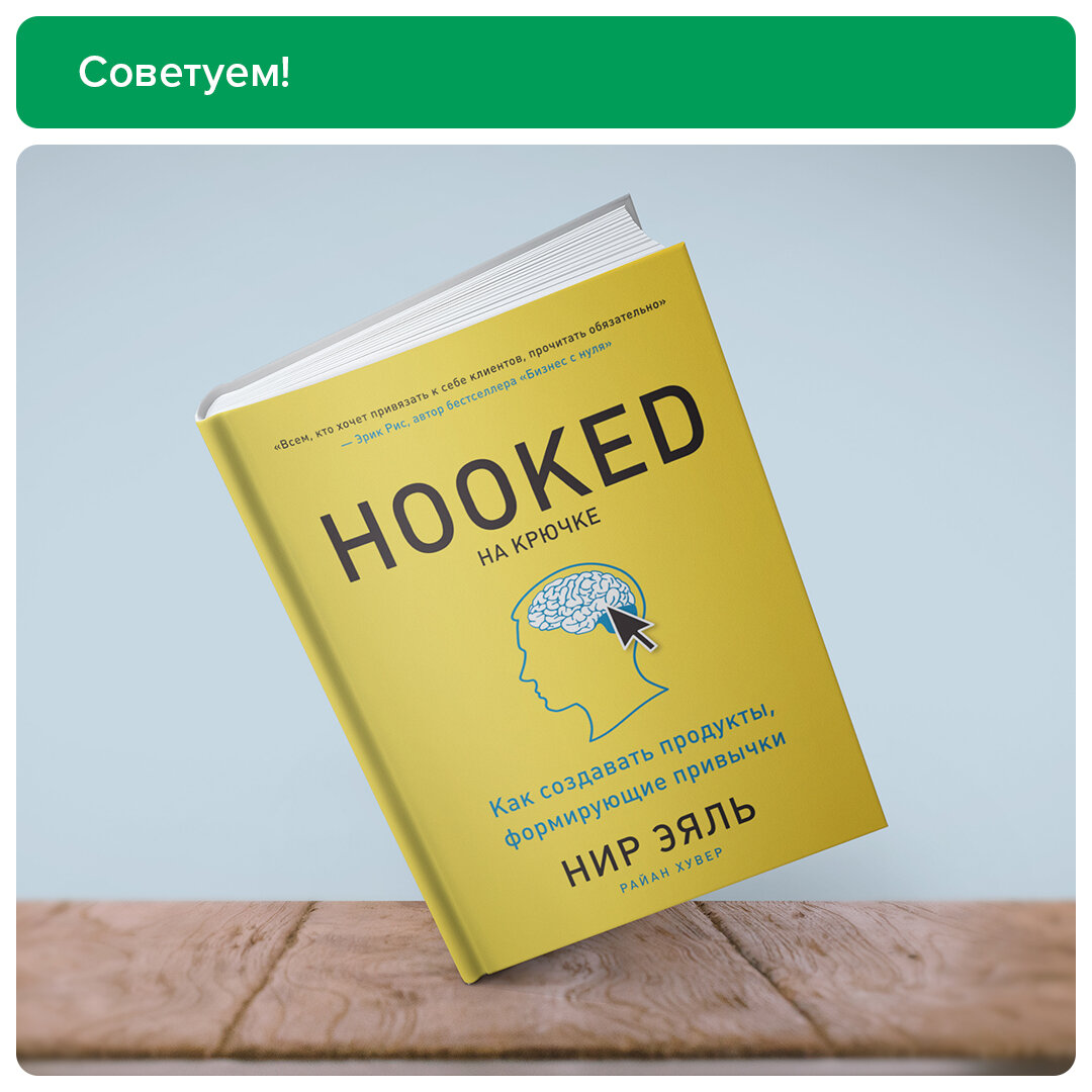 Книга Нир Эяль «На крючке. Как создавать продукты, формирующие привычки» описывает процессы, которые позволяют формировать привычки покупателей и регулярно возвращать потребителей без агрессивного маркетинга и дорогой рекламы.