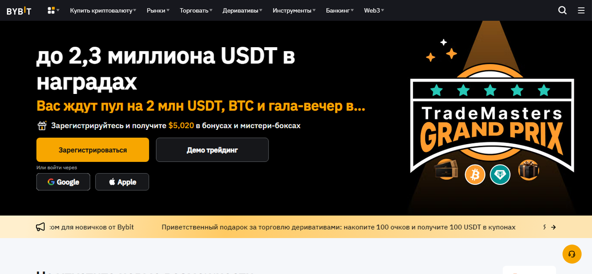 Криптовалютная биржа Bybit — это одна из самых популярных криптобирж, где можно торговать криптовалютой, а также совершать обмен через P2P платформу. Помимо этого Bybit предоставляет превосходное обслуживание на многих языках мира, в том числе и на русском.