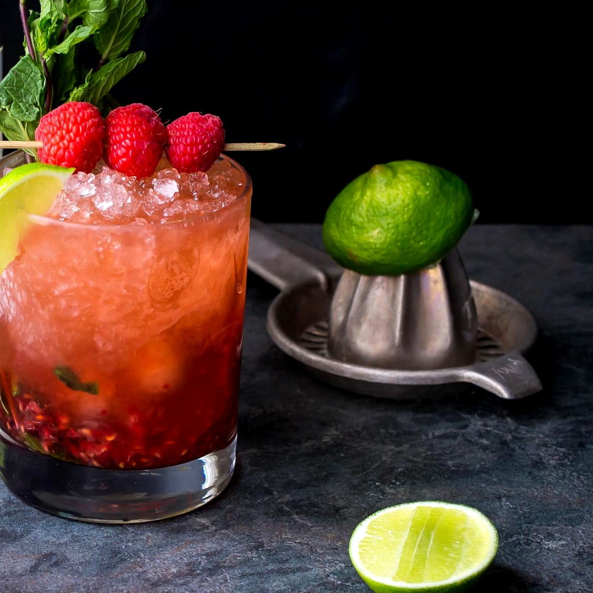 Ингредиенты: 6 ягод малины, 3-4 листика мяты, базилика или шалфея, 2 чайные ложки сахара, сок половины лайма, содовая, 50 мл водки Царская Оригинальная, лед.