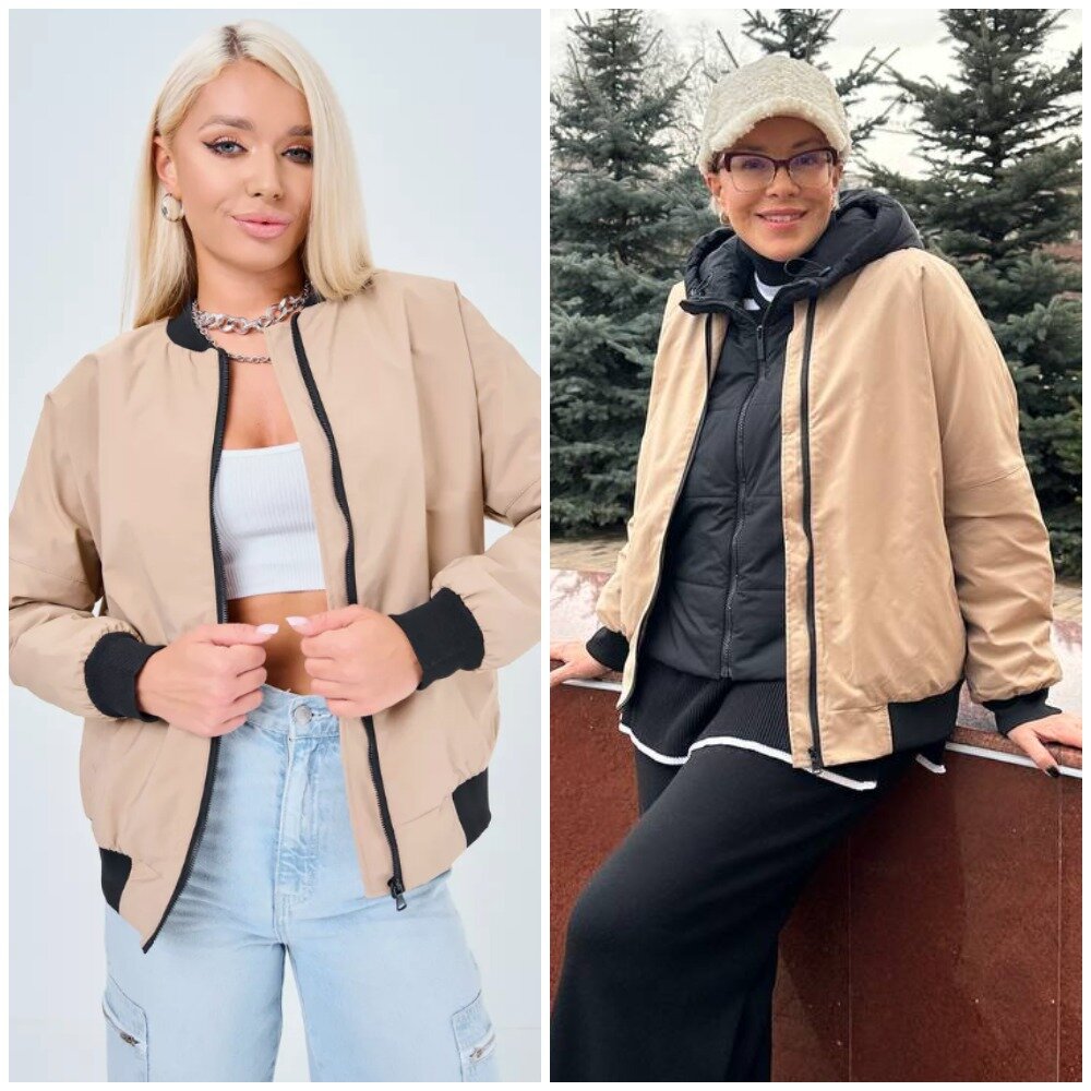 Здравствуйте, дорогие читатели! Меня зовут Ирина, я - стилист, и на этом канале показываю одежду и аксессуары с Wildberries такими, как они есть, то есть, из серии "ожидание/реальность". Мои параметры: рост 169 см, вес 67 кг, 94-74-100 ✅Основной канал: Стильно - не значит дорого! Ставьте лайк в поддержку канала, и давайте смотреть на мою сегодняшнюю покупку. В этом сезоне невероятно актуальны бомберы, но лично я их любила всегда, вне зависимости от трендов. Они очень помогают мне составлять любимые многослойные образы, пример которого я как раз демонстрирую вам на фото. В этот раз я заказала себе бомбер на синтепоне с хорошей ветрозащитой, что для нас, петербуржцев, просто необходимо. По моему совету и моя подруга Лена заказала такой же в своем любимом цвете хаки. Я же выбрала бежевый. Бомбер качественно сшит, на рукавах есть манжеты. Модель оверсайз и, если вы, как я, любите многослойные образы, то берите вообще на размер больше своего. Такой бомбер отлично дополнит практически любые