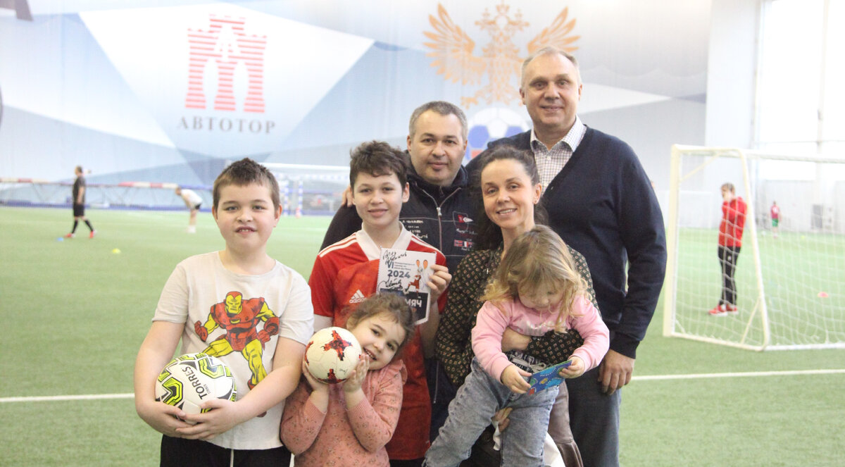 На поле футбольного манежа Дворца спорта «АВТОТОР-Арена» состоялась торжественная церемония награждения победителей конкурса «Лучший болельщик VI Международного турнира по мини-футболу «Зимний мяч АВТОТОР 2024». Напомним, что данные соревнования проходили 3-4 февраля и собрали свыше 1 тысячи участников, представляющих 92 команды школ Калининградской области, предприятий, организаций и учебных заведений как самого западного региона России, так и других российских регионов, а также стран. Решением оргкомитета турнира звание «Лучших болельщиков» было присуждено многодетной семье Русановых, чей сын Валентин выступал за команду средней школы № 2 Калининграда. Поздравляя победителей конкурса, вице-президент по социальному развитию АВТОТОР Вадим Бобрович отметил символичность, что в Год семьи, которым по указу Президента России Владимира Путина объявлен 2024 год, лучшим болельщиком стала именно многодетная семья. «Проводя данную церемонию, мы как бы возвращаемся в начало февраля, когда на фут