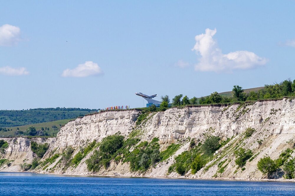 Недалеко от села Белогорское, которое большинству известно по находящемуся рядом утёсу Степана Разина, установлен монумент с самолётом-истребителем МиГ-17. Стоит он на берегу Волги, так, чтобы было видно с воды. Памятник установлен в честь летчиков - участников Великой Отечественной войны. На постаменте надпись: «Славным соколам, отважным защитникам Советской Родины от благодарных земляков». Ежегодно тут проводится "День призывника", поэтому в это время всё украшено флагами. А выбор места не случаен - в селе Белогорское родился и провёл юность дважды Герой Советского Союза, маршал авиации Скоморохов Николай Михайлович.