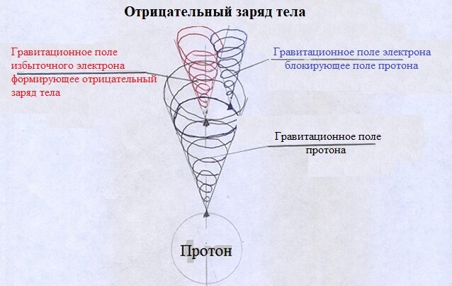 Когда у поверхностных атомов тела нет одного электрона, то гравитационные поля протонов выходят за границы тела и это трактуется, как положительный заряд тела. Когда в атоме избыточный электрон, то тогда гравитационное поле этого электрона выходит за границы тела и это трактуется, как отрицательный заряд.