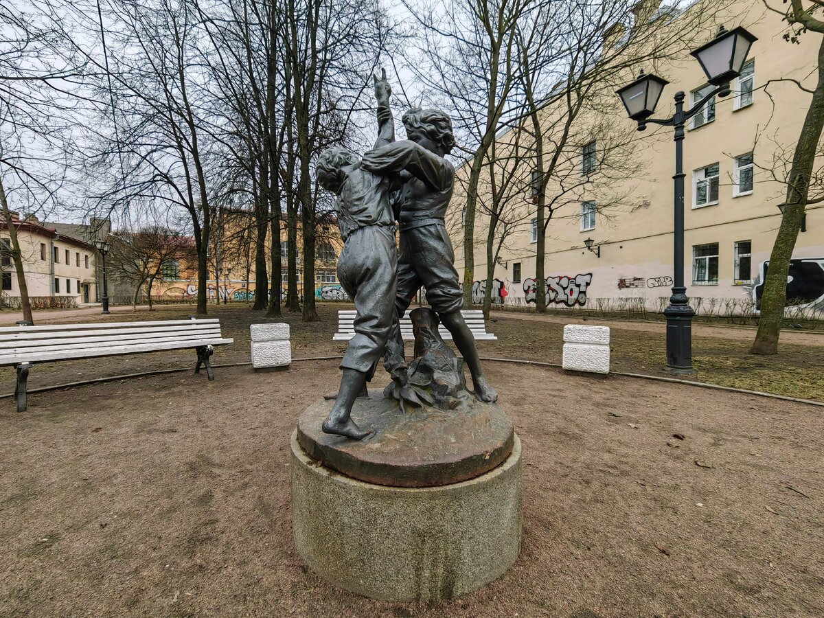 Есть в Петербурге симпатичная зелёная зона, которая в 2023 году получила название "Джазовый сквер". Связано это с тем, что напротив, на Загородном проспекте в доме 27, находится Петербургская Филармония джазовой музыки. Но отправился я туда по другой причине. Узнал, что в этом сквере можно увидеть красивую скульптуру, которая называется "Мальчики с гусём". Она была отлита в XIX веке на заводе "Ф. Санъ-Галли". О чём говорит еле заметное, спрятанное под многочисленными слоями краски, клеймо в основании постамента - "Ф. САНЪ - ГАЛЛИ (верхний ряд) С.П.Б. (нижний ряд)" В своё время данная композиция являлась частью фонтана. Об этом факте свидетельствуют старожилы района. Информации в каком именно дворе фонтан располагался я не нашёл (кроме того что "в пятом", как написано выше). Но в этом месте скульптура была установлена в 2005 году. Отреставрирована ООО "Матис". Очень интересный обьект! Если вы про него не знали, рекомендую сюда прогуляться! Ну а я продолжну фото-собирать артефакты завода