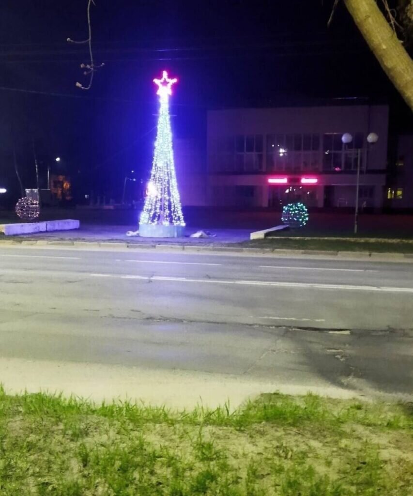 Новогодний прикол весной: в Брянске у школы искусств Николаевой зажгли ёлку 2 апреля