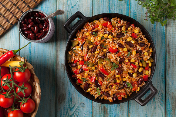 Любите экспериментировать с рецептами из разных кухонь мира? Тогда непременно приготовьте рис с мексиканским акцентом. Блюдо получится ярким, сбалансированным, пикантным. Количество острого перца регулируйте по своему вкусу. Вместо воды можете использовать мясной или овощной бульон. Фасоль берите отварную или консервированную. Мы сделали выбор в пользу последней.