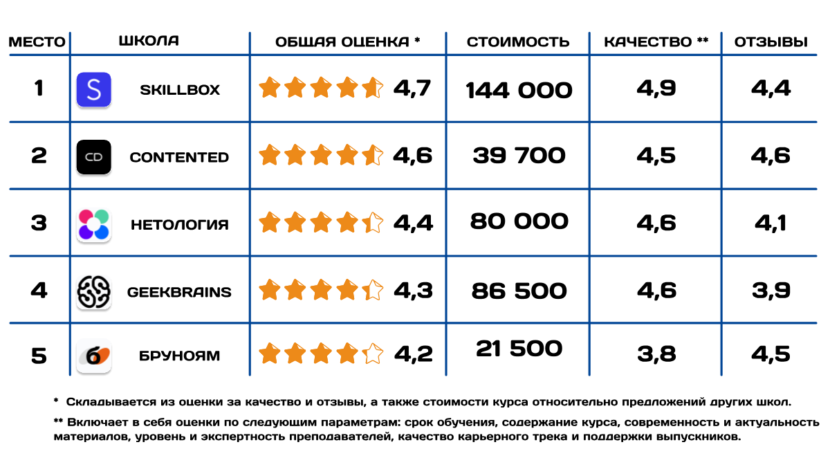 Мы постоянно работаем над улучшением наших обзоров и рейтингов курсов, чтобы они делали процесс выбора простым и понятным. Если вам не хватило какой-то информации, или у вас есть пожелания, как улучшить наши статьи, просим вас написать в комментариях что именно нам стоит изменить или дополнить. Мы чутко реагируем на обратную связь и обязательно добавим недостающую информацию!
