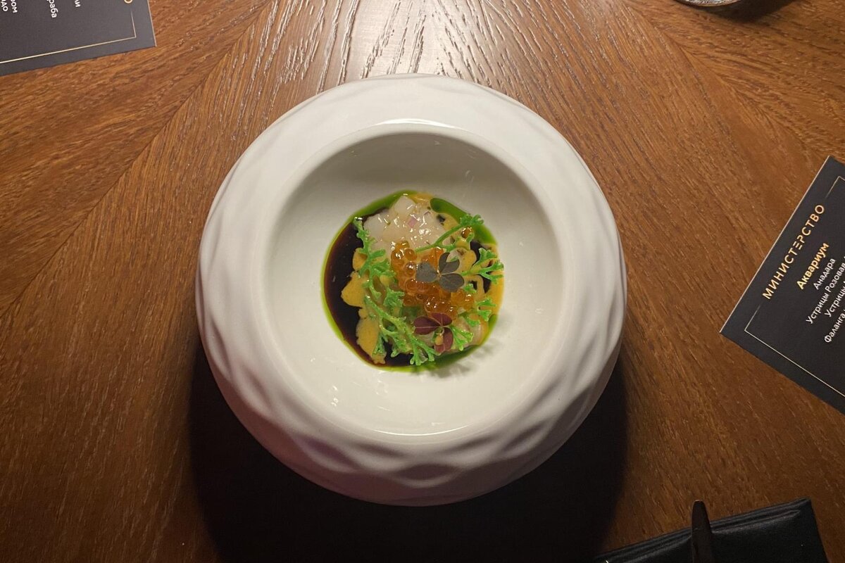 Петербург. Шоу-подача блюд, оранжево-красный Сатурн и сезонные коктейли. Другие петербургские открытия Рестобар «Министерство» открылся на улице Рубинштейна, 24. Заведение работает с 14:00 до 06:00. Днем — это ресторан с европейскими, средиземноморскими и азиатскими блюдами со зрелищной подачей, а ночью — бар с внушительным набором классических коктейлей, музыкой и вечеринками. «Министерство» заняло бывшее помещение ресторана «Есенин», который зимой переехал на Рубинштейна, 13. Тематический интерьер поэта из Рязанской губернии заменили яркой и стильной обстановкой. Внутри — оранжево-красный Сатурн над баром, стойки из оникса и светодиодные панели. Рассказываем, что такое «Министерство», чем оно отличается от других заведений и как удивляет подача блюд. Все из первых рук. На кухне готовит молодой шеф из Сибири, чье мастерство в 2022 году высоко оценил Константин Ивлев, — 27-летний Игорь Милованов. Сам повар называет себя адептом сибирской кухни, однако его кулинарная концепция в «Минист