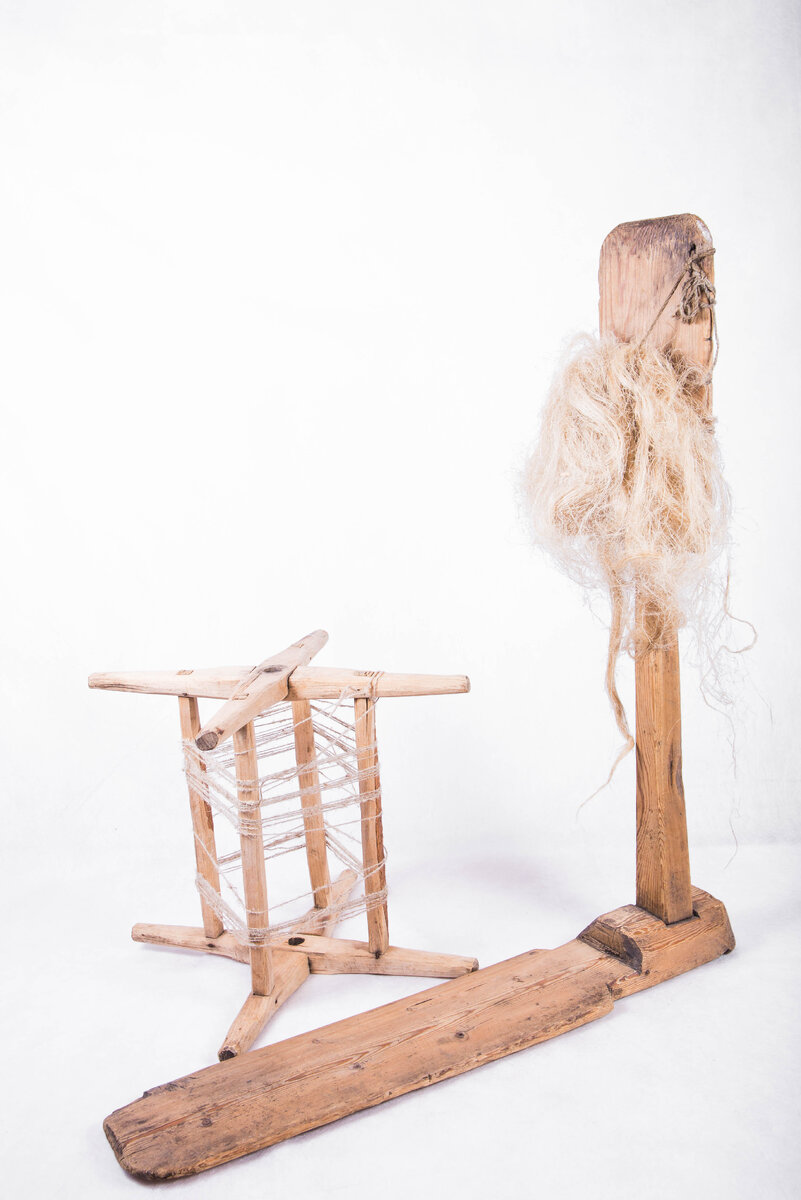 Смысл прядения заключается в спиральном скручивании шерсти до получения ровной и прочной нити – пряжи. Скручивать волокна можно было руками – сучить между ладонями или тереть о поверхность. А также на прялке с помощью веретена. «Пряслице» – так называлась прялка в Древней Руси. Самые известные – прялки-донце. Это две доски (чаще из березы или ели), соединенные между собой под прямым углом. На вертикальную часть (лопаску) привязывали кудель – подготовленную шерсть, а на нижнюю садилась пряха с веретеном в руках 🪵