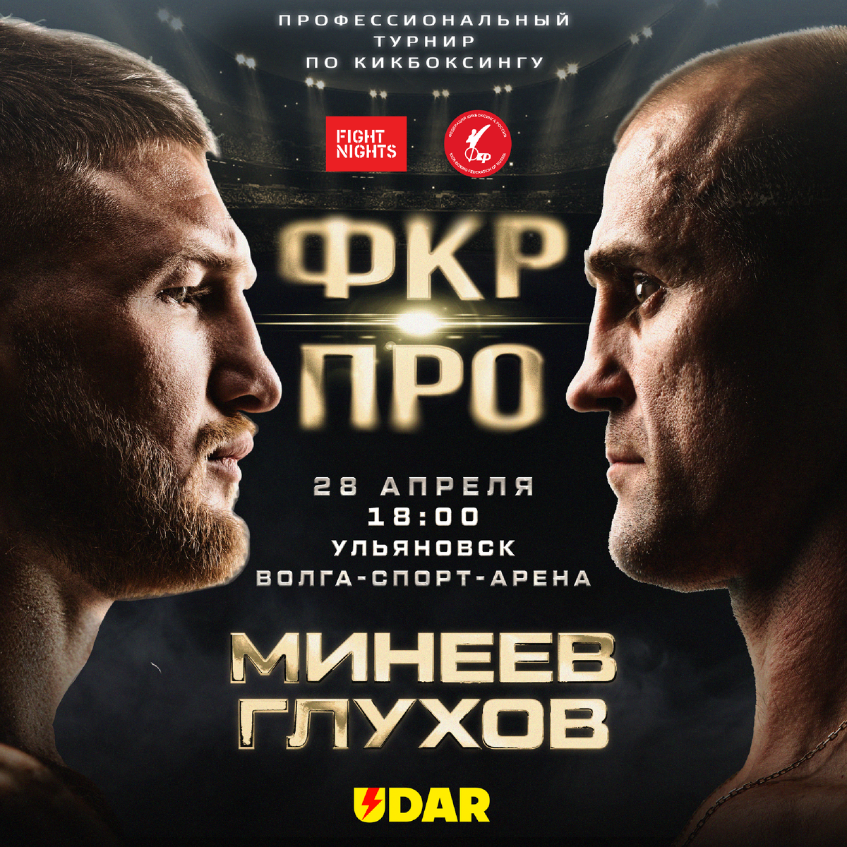 🔥 28 апреля в Ульяновске состоится большой вечер профессионального кикбоксинга ФКР ПРО. Камил Гаджиев, глава AMC Fight Nights и по совместительству член исполкома Федерации кикбоксинга России, помогает развивать этот зрелищный и интересный вид спорта. Его опыт в организации турниров по ММА дает возможность проводить громкие события - и турнир 28 апреля станет одним из них. В прямом эфире телеканала UDAR вечер возглавят звезда российских смешанных единоборств Владимир Минеев и легендарный кикбоксер, известный на весь мир Константин Глухов. 🥊 Их поединок пройдет по правилам кикбоксинга в разделе К-1 – никакого тайского клинча, долгих захватов и прочей вязкости. Засчитываются только чистые попадания, на бойцах будут большие, 10-унцовые перчатки, и Владимир с Константином по регламенту должны будут провести 3 раунда по 3 минуты. Это если дело не закончится нокаутом – а он в этой паре вполне вероятен. 🔝 Особенно если вспомнить, как часто свои поединки досрочно завершал Владимир Минее