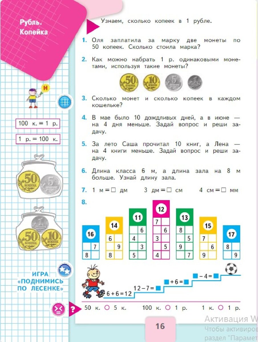 Многие учащиеся знакомы с монетами из опыта своей внешкольной жизни, однако полагаться всецело на этот опыт нельзя. Нужно учащимся монеты показать для непосредственного обозрения их, приурочивая этот показ к соответствующим числам, т. е. при изучении первого десятка показать монеты в 1, 2, 5, 10 рублей, при изучении 100 - 10, 50 копеек. Для лучшего знакомства с монетами надо широко использовать модели монет, изготовляемые самими учащимися и используемые в качестве дидактического материала. Способ изготовления моделей очень простой: под чисты кусок бумаги подкладывается монета, затем карандашом бумага затушевывается и вырезается. На этих монетах производится изучение состава чисел сначала в пределе первого десятка, а потом и второго десятка.