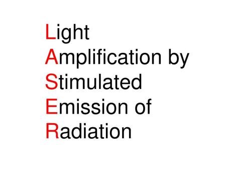Вынужденное излучение - генерация нового фотона под действием внешнего электромагнитного поля. В процессе такого излучения вовлечены два фотона: первичный фотон, вызывающий испускание излучения возбужденным атомом, и вторичный фотон, испущенный атомом. Что интересно, полученный фотон имеет точно такую же частоту (закон сохранения энергии), направление распространения и поляризацию. Но кроме этого у фотона нет других характеристик, то есть это фотон «близнец». Сколько же таких фотонов может получится, рассуждая о их появлении? В подготовленной среде - бесконечно. Такой поток называют - фотоновая лавина. Это излучение под действием фотонов позволяет получить усиление света. “Light Amplification by Stimulated Emission of Radiation” - Усиление света с помощью индуцированного (вынужденного) испускания излучения. Фраза раскрывает принцип действия лазеров, а заглавные буквы каждого слово и составляют название устройства. Первоначально это явление предсказал Альберт Эйнштейн в 19