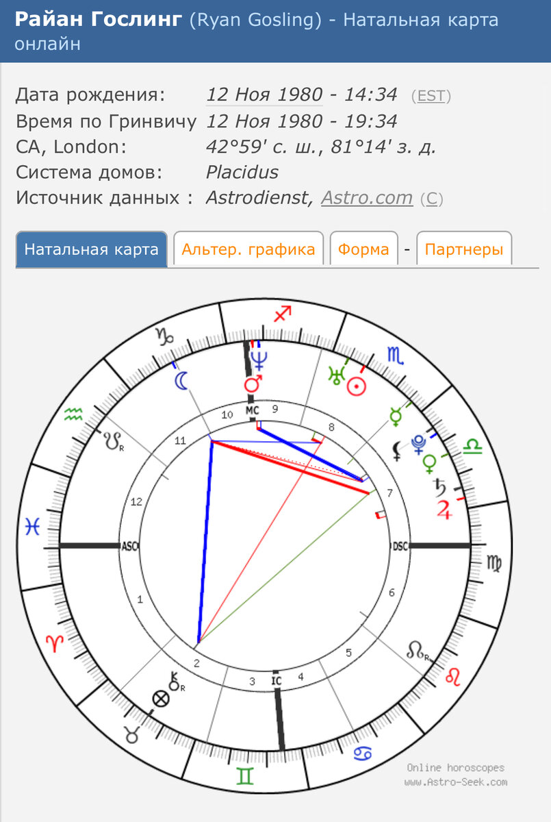 Проанализируем натальную карту актера Райана Гослинга Состояние актера на март 2024 года превысило 43 млн $ На поверхности заработок через актерскую деятельность. Как это отображено в карте? На куспиде 2 Дома знак зодиака Телец ♉️ - заработок через сферы: дизайн, еда, ИСКУССТВО, красота и здоровье и тд.. 1️⃣Планет во 2 Доме нет, но там находится Парс Фортуны для тех, кто учитывает арабские точки - дополнительный плюс к везению в материальных вопросах 2️⃣Анализируем положение Управителя 7 Дома, те какие факторы, дела, обстоятельства помогают достижению материально-финансового благополучия 3️⃣Управитель 2 Дома - Венера в знаке своего владения Весах ♎️ в соединении с Плутоном, которому свойственно всему предавать неадекватные масштабы в 7 Доме - известность, общественная деятельность, актерская/сценическая карьера, работа на публике - все это *️⃣Также в контексте анализа финансов принято рассматривать 5 и 8 дома. 5 мы пропустим, тк в нем нет планет, а вот в 8 целых две: Солнце