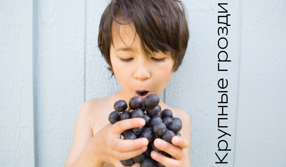 Виноградины имеют овальную продолговатую форму, длина их до 43 мм, а диаметр 25-27 мм. Окрашены они в красно-фиолетово-черный цвет, очень привлекательный. Грозди ширококонические, средне-рыхлые, масса 600-900 г, нередко встречаются гиганты свыше 1 кг и совсем редко, но бывают, с массой более 2 кг.