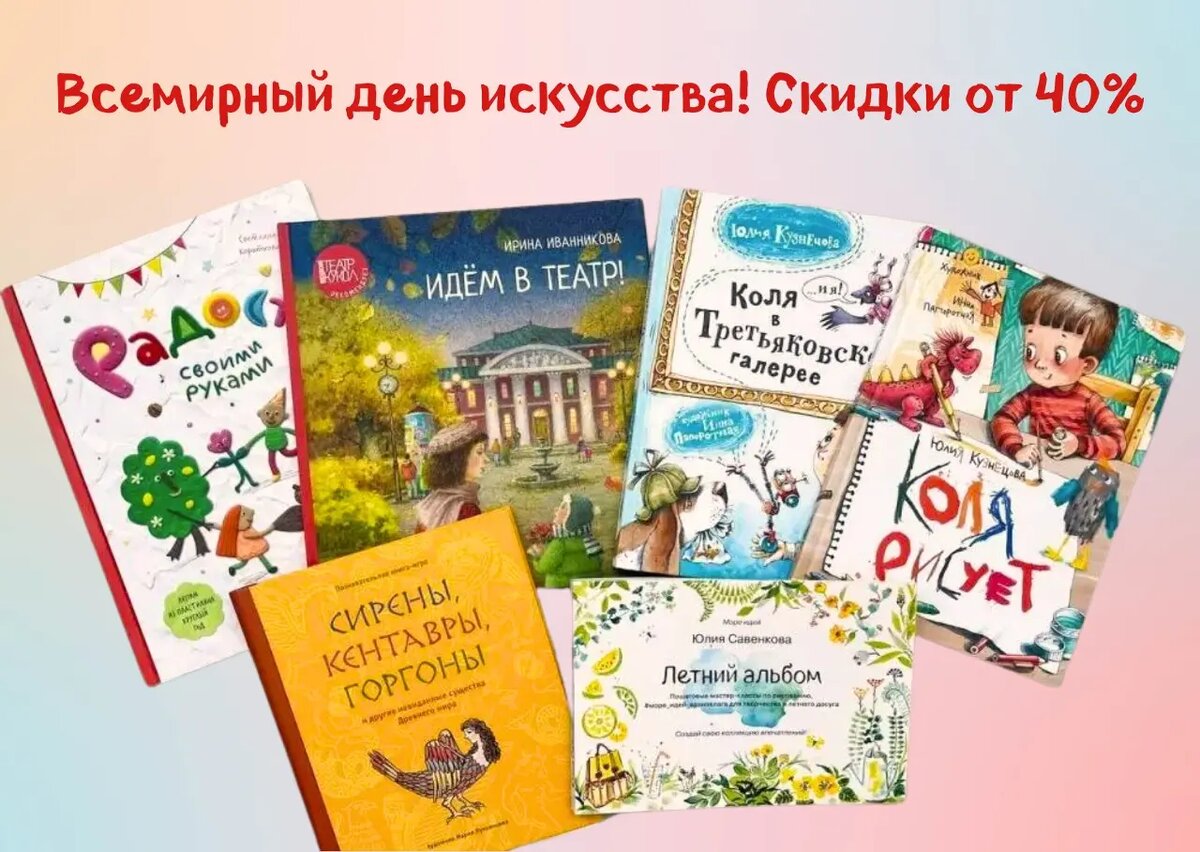 Поздравляем с Всемирным днём искусства! В честь праздника до 19 апреля «Архипелаг» дарит скидки от 40% на детские книги об искусстве и творчестве.