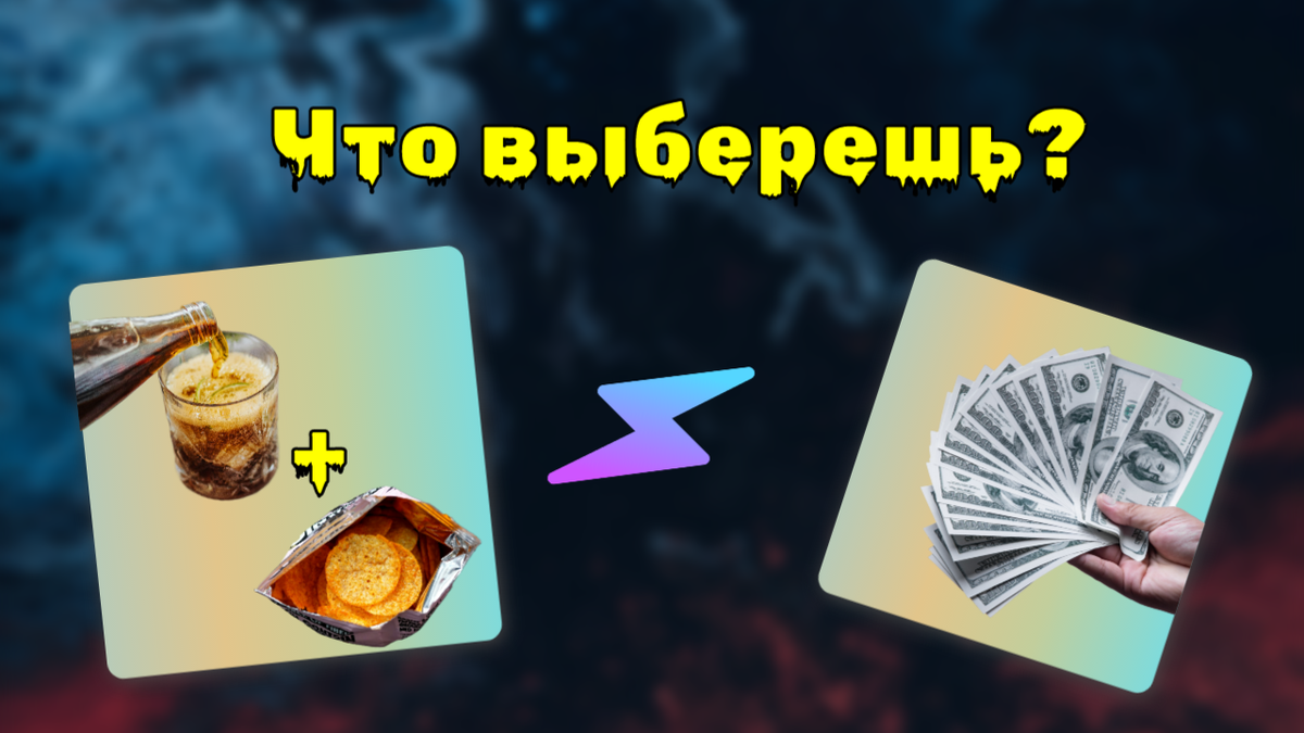 Чипсы с газировкой или 2 миллиона рублей. Что выберешь?