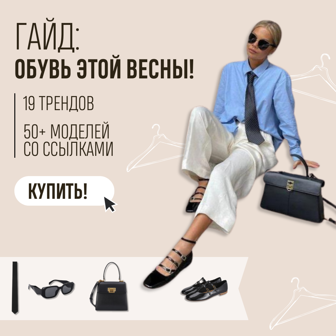 👗Одежда меняется постепенно. 👠👜Обувь и сумки – долго, годами, остаются похожими, а потом, примерно раз в 4-5 лет резко меняются. И сейчас как раз такой момент: новые фактуры, новое прочтение балеток и серебряной обуви. Лет 6 назад все это было и снова вернулось, но совершенно другим. Мы собрали гайд с обзором 1️9️ актуальных обувных трендов. Мы выбрали только то, что можно носить. Никаких огромных мохнатых тапочек – только то, что можно носить в городе и понятно, куда. Актуальная обувь для офиса, прогулок и свиданий этой весной🌱 Больше 50 моделей со 🔗из российских магазинов. ⠀ Рекомендации, с чем сочетать и как носить, от наших стилистов. 👉🏻Цена гайда 499₽ Заказать можно по 🔗 ☝🏻В наших коробочках пока нет обуви, но после примерки вы можете попросить стилиста подобрать обувь со ссылками к одежде, которая вам подошла. 👉🏻Заказать капсулу для себя с 24-часовой примеркой можно за 990₽ (490₽ на первый заказ) по 🔗 #марла_инсайт