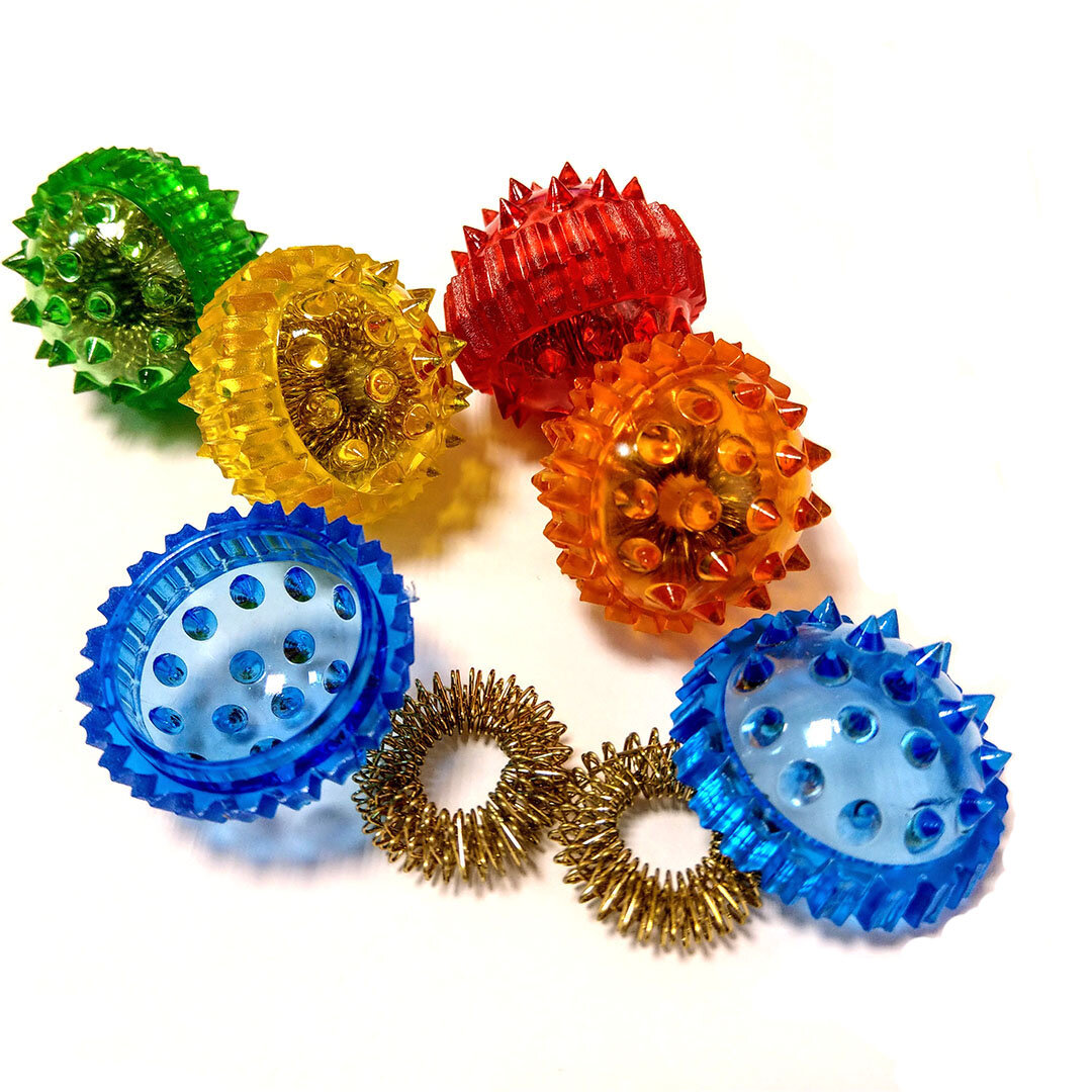 С помощью шариков («суджиков») и колечек удобно массировать пальцы для благотворного влияния на весь организм. Дети активно включаются в игру с яркими, колючими шариками.