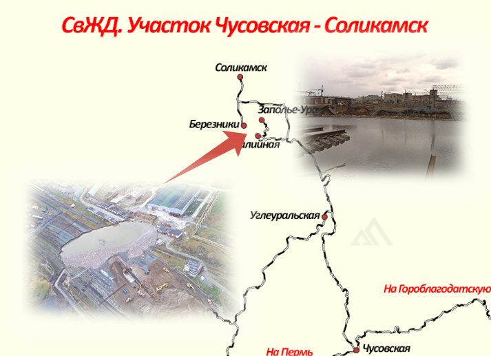 Вероятно, самое неординарное место на сети РЖД - ветка Чусовская - Соликамск. Известность линия получила в конце нулевых, когда под землю здесь провалилась целая ЖД станция. Да не какая-то, а одна из крупнейших в регионе - Березники! Масштабы катастрофы оказались настолько велики, что восстановить станцию так и не получилось. В результате на карте стальных магистралей появились два новых "тупика" и 50-километровый обход, являющийся, как это не иронично звучит, едва ли не самым масштабным реализованным в РФ железнодорожным проектом за последние 30 лет.