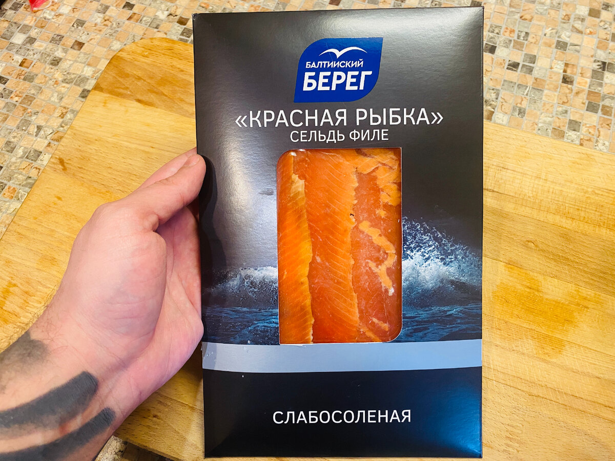 Давненько не было обзоров на какую-нибудь интересную штуку из всеми известных магазинов. Я уже давно натыкаюсь взглядом на крашеную селедку, замаскированную под красную рыбу, уже даже покупал ее и пробовал, но до обзора время что-то не дошло из-за отсутствия времени. Сегодня таки руки дошли, так что давайте глянем, что это за крашеная селедка такая. Итак, селедка от компании "Балтийский Берег". На этикетке довольно таки крупными буквами написано, что СЕЛЕДКА, поэтому что назвать такой маркетинговый ход ловушкой для мамонта (который не вымрет) - язык не поворачивается. Но я почему-то уверен, что на планете Россия все равно найдется человек, купивший эту пачку и очень удивившийся, что ему подсунули крашеную селедку, а не красную рыбку. Чему тут удивляться, если толпы людей ежедневно отправляют деньги представителям сбербанка. Короче, мох не мамонт. Глянем сразу на состав В составе нет ничего особо интересного: селедка, соль, пара консервантов и столько же красителей. Все Е-шки, которые