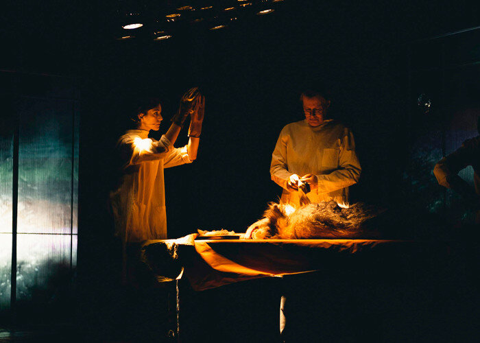 В новом «Собачьем сердце» нет ни спора с легендой, ни диалога с легендой, что, в общем, не наказуемо. У Маяковского — помните? — не было почтенья к мандатам. Фёдоров препарирует текст Булгакова примерно с той же вольностью, с какой профессор Преображенский восставал против законов естества, пересаживая одним яичники обезьяны, другим, наоборот, человеческий гипофиз и семенники. В роли профессора Преображенского — кажется, всегда и везде прекрасный Игорь Гордин. Заметив живого пса, профессор мгновенно реагирует: