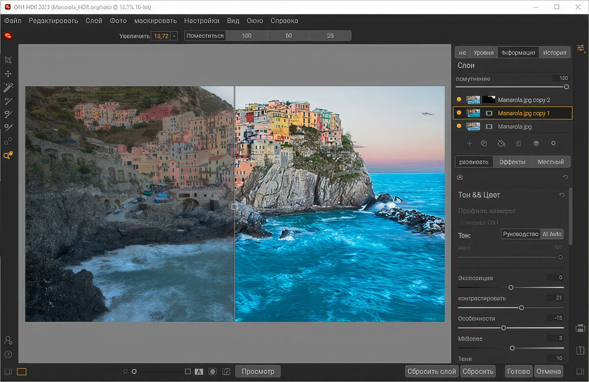 - Создавайте несколько слоев одной и той же фотографии HDR и используйте разные настройки неразрушающего эффекта для каждого слоя.