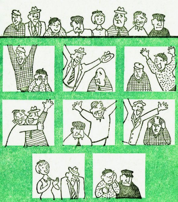 Эти рисованные задачи на логику печатались в детских журналах типа "Мурзилки" ещё в те времена, когда не существовало смартфонов, компьютеров и даже тетриса. И тем не менее, когда показываешь их современным детям, оказывается, что они им по-прежнему интересны. Разобрав одну, они просят ещё и ещё, так что присылайте, если у вас есть. А вот очередные две задачи, которые я нашёл на просторах интернета и которых у меня на канале ещё не было. Задача про болельщиков На картинках восемь болельщиков и их реакция на забитые мячи. Всего было 8 голов. С каким счётом закончился матч? Задача про флажный семафор Сегодня многие в голову не могут взять, как раньше передавали целые предложения флажным семафором, показывая разные жесты флажками в руках. Но такое было. И вам нужно разгадать, что хочет сказать мальчик на картинке. Дальше пока не листайте, там будут ответы и решения. Подумайте. Решения Задача про болельщиков Всего у нас 8 болельщиков. Кто за какую команду болеет, мы не знаем, но это легко