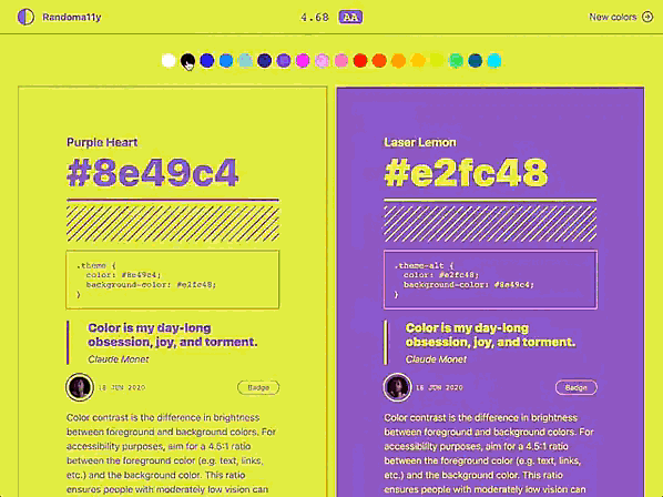 Генерируйте случайные, доступные цветовые комбинации