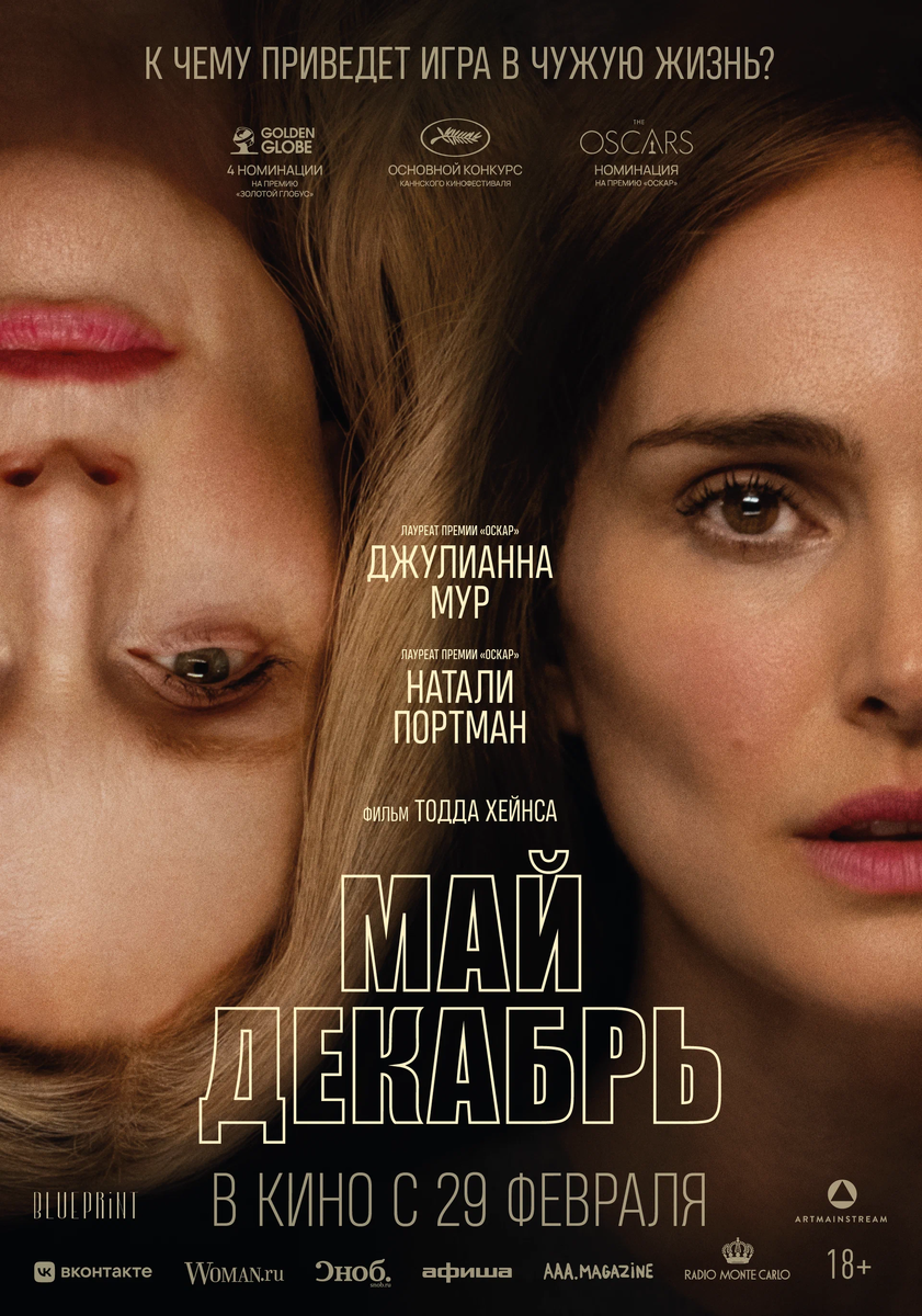 Рецензия также размещена на моей странице на Кинопоиске: Ссылка на профиль Кинопоиска - https://www.kinopoisk.ru/user/14240401/comments/ Рейтинг: Жанр: драма Драматическая лента Тодда Хейнса с одной стороны демонстрирует замену жизни, преобразование из одного человека в другого, с другой стороны – кропотливую работу актрисы, которая готовится сыграть главную героиню на большом экране. Перспектива в образе и в подходе к роли (Натали Портман по системе Станиславского вживается в роль с головой, а учитывая, что у нас в принципе это фильма Тодда Хейнса, то актриса действительно играет внутри игры – фильм во время подготовки к съёмкам к другому фильму). Эдакое многогранное искусство. Как сон внутри сна из «Начала» Кристофера Нолана. Лента рассказывает о приезде актрисы Натали Портман в дом, в семью к Джулианне Мур, чья история, которая ещё пока не известна нам, заслуживает экранизации. Сразу выбиваются из общего восприятия муж и дети, когда ты понимаешь разницу в возрасте Джулианны и мужа Ч