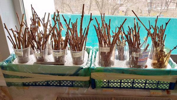 Доброго времени суток, всем мира и добра. После публикации моей статьи о предварительном проращивании черенков винограда на поплавках, последовали неоднозначные комментарии от читателей. Одни сомневались в возможности использования ёмкостей для проращивания из пластмассовых фруктовых ящиков, другие считали, что сама подготовка поплавков для проращивания весьма «геморройная». В общем, в большинстве комментариев сквозил неприкрытый скепсис. Сегодня я публикую своеобразный фотоотчёт о динамике процесса проращивания черенков на поплавках, все фото выполнены спустя ровно 14 дней после начала проращивания. Полученные результаты меня полностью устраивают, и данная методика проращивания подтвердила свою жизнеспособность. Кратко расскажу о процессе подготовки черенков к проращиванию. Все черенки использовались с моего виноградника, хранились в погребе, пучки черенков размещались вертикально. Нижняя часть пучков черенков, примерно 3-5 см., засыпалась влажным песком. Черенки использовались разной