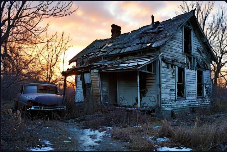 Аня сделала несколько шагов внутрь. Перед ней предстал дом, такой же деревянный и давно невидящий ни краски, ни ухода, покосившийся влево параллельно ржавой калитке. Крыша прохудилась, кое-где торчали вверх доски. Дом казался абсолютно заброшенным. Разве здесь можно жить? Нет, Аня не ожидала увидеть хоромы или такой же шикарный дом как у родителей Глеба, но не такой же…