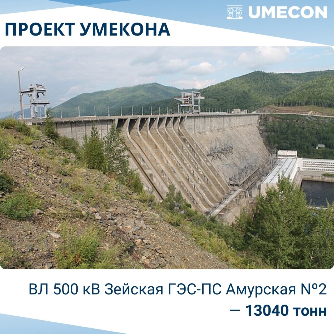 Для Зейской ГЭС-ПС Амурской Nº2 Уральский завод металлоконструкций произвел более 13 000 тонн Воздушных линий электропередач (ВЛ) напряжением 500 кВ. Только представьте, Зейская ГЭС является второй по мощности гидроэлектростанцией на Дальнем Востоке России. Она имеет самую высокую в России плотину контрфорсного типа, а также самые мощные диагональные гидротурбины. И именно УМЕКОН создал для этой станции ВЛ, которые необходимы для создания единой энергетической системы и распределения мощности по всей станции.