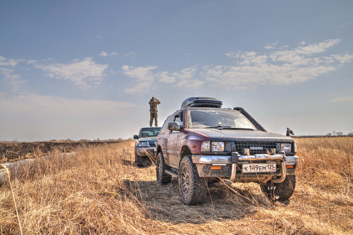 Приветствую друзья, хотел рассказать о поездке на открытие и поделиться фотографиями. Открытие в Южных областях благополучно было упущено из-за работы, но душа хотела вырваться на природу, в связи с чем принято решение ехать в центральные, почти за 300 км от дома. Как всегда предварительно созвонившись с членами коллектива, купили путевки и лицензии на дату и обговорили время выезда. Снаряжение подготовлено, скрадки и чучела проверены. В дни поездки выдалась прекрасная солнечная погода. Встретившись в нужной точке и собрав колонну из трех автомобилей выезжаем в район, утренняя дорога радует отсутствием большого количества техники, асфальт тихо гудит под покрышками и можно иногда полюбоваться набегающими пейзажами. В спокойном режиме добираемся до места и начинает искать место для стоянки Пропустив нужный поворот попадаем в разбитую колею и не много месим грязь, но все проходит в штатном режиме и после непродолжительной раскачки автомобиль снова на твердой земле. Найдя хорошее местечко