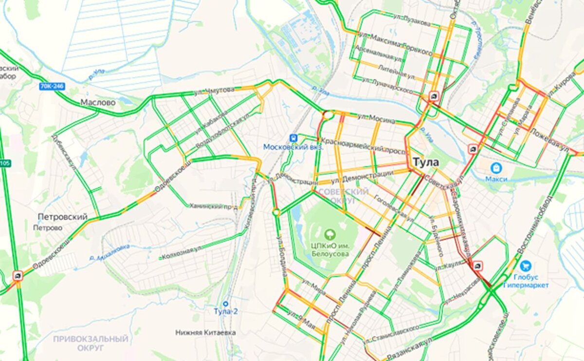 Утренние пробки в Туле: Яндекс показывает четыре ДТП на карте города
