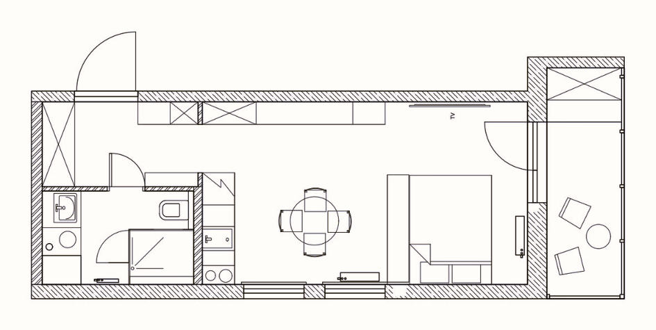 Квартира имеет небольшую площадь, всего лишь 29 "квадратов", поэтому главной задачей было создание грамотного и продуманного интерьера, чтобы максимально рационально использовать каждый сантиметр пространства. Для выполнения поставленной задачи был приглашен профессиональный дизайнер.